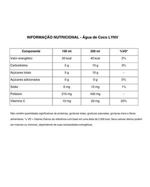 Pureza Autêntica: Aproveite o sabor natural e refrescante da água de coco LYNV, uma fonte rica em nutrientes e eletrólitos, ideal para a saúde de todos.